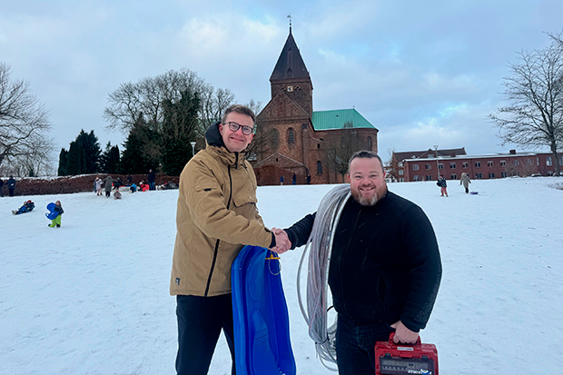 – Vintervejret er en fantastisk legeplads, og det er perfekt, at børn og barnlige sjæle allerede her i weekenden kan kælke i Klosterlunden – også om aftenen. Jeg glæder mig til at kigge forbi lørdag aften og se den oplyste kælkebakke med vores smukke Sct. Bendts Kirke i baggrunden. Det tror jeg bliver nogle rigtig flotte scener, og jeg håber, at byens børnefamilier vil tage godt imod initiativet, siger Andreas Karlsen.